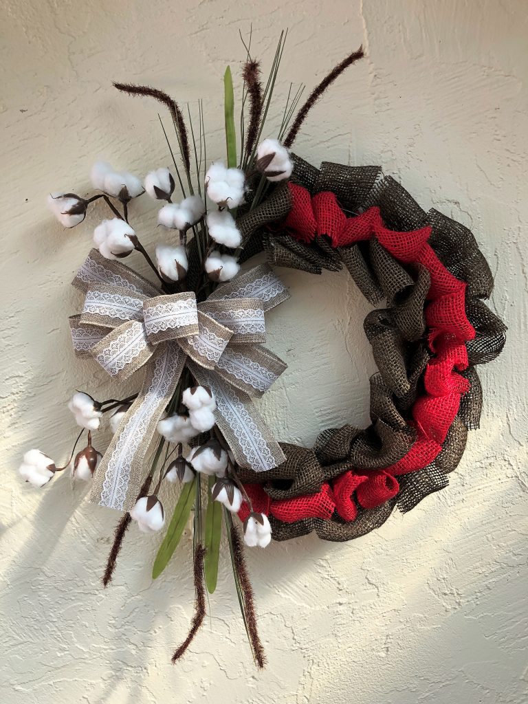 Burlap and Cotton Flower Fall Wreath